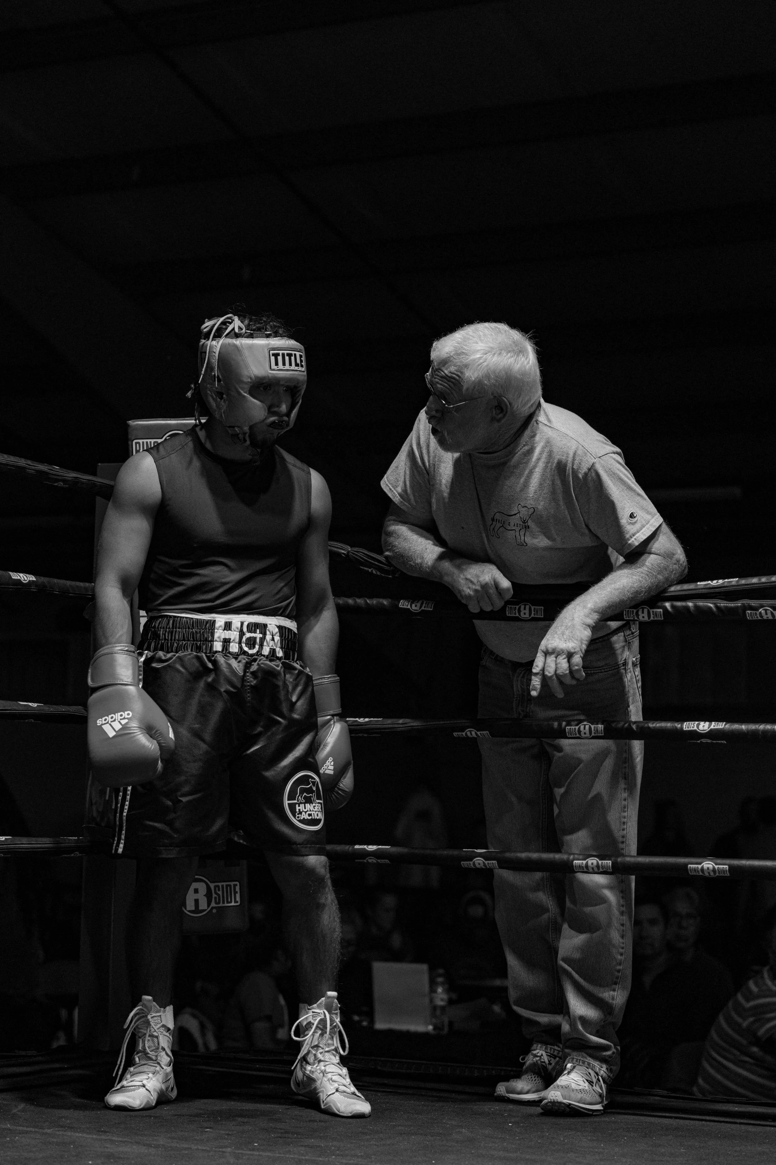 The lighting was rough - pitch black in the entirety of the venue save for a single large light above the ring. As the fighters moved to the edges it was harder to capture the shots and I was forced to crank the ISO. But when they fought in the middle, toe-to-toe I was able to get the best shots of the night.